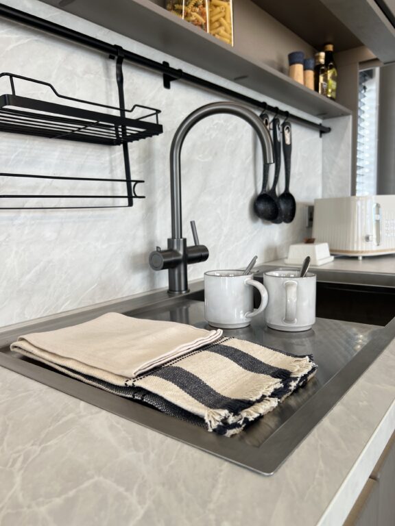 With sleek cabinetry, quality appliances and generous storage, the kitchen is both practical and beautifully designed, making it ideal for everything from quiet breakfasts to shared meals.