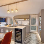 At the heart of the home is a modern kitchen featuring a central island with induction hob and integrated extraction.