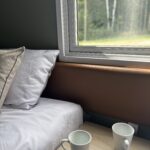 The Bower’s open-plan living space is bathed in natural light, thanks to the French doors allowing you to seamlessly connect with the outdoors and enjoy your morning coffee to the sound of birdsong. A striking blue feature wall immediately puts you at ease, inviting you to switch on the cosy log-effect fire and stretch out on the huge L-shaped sofa. There’s plenty of room to watch a movie on your TV, which could be as big as 50″, making this the perfect space to unwind together after a day of exploring the countryside.