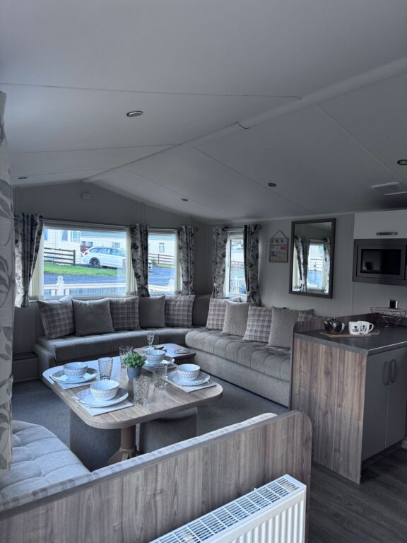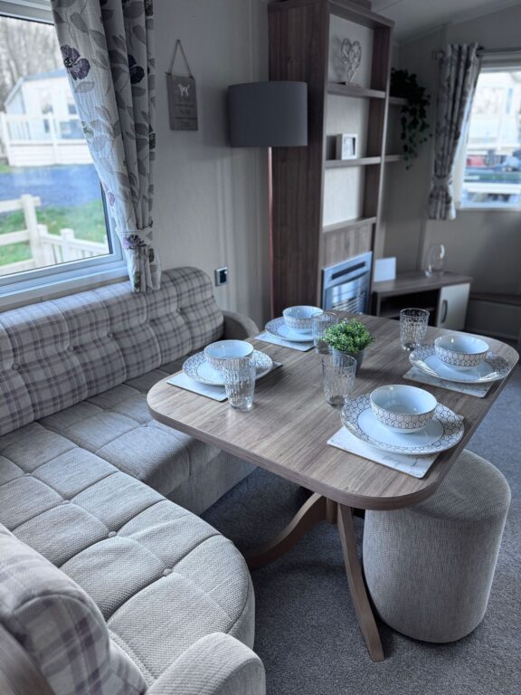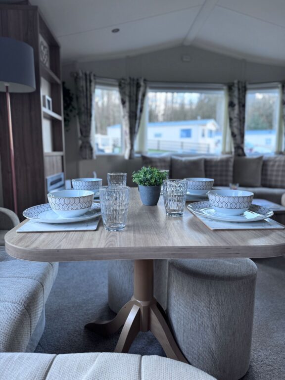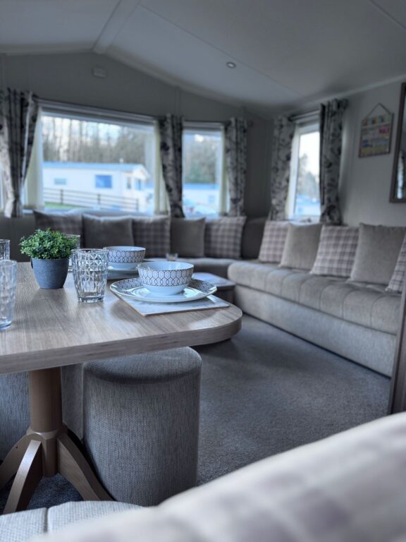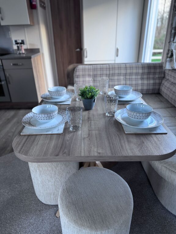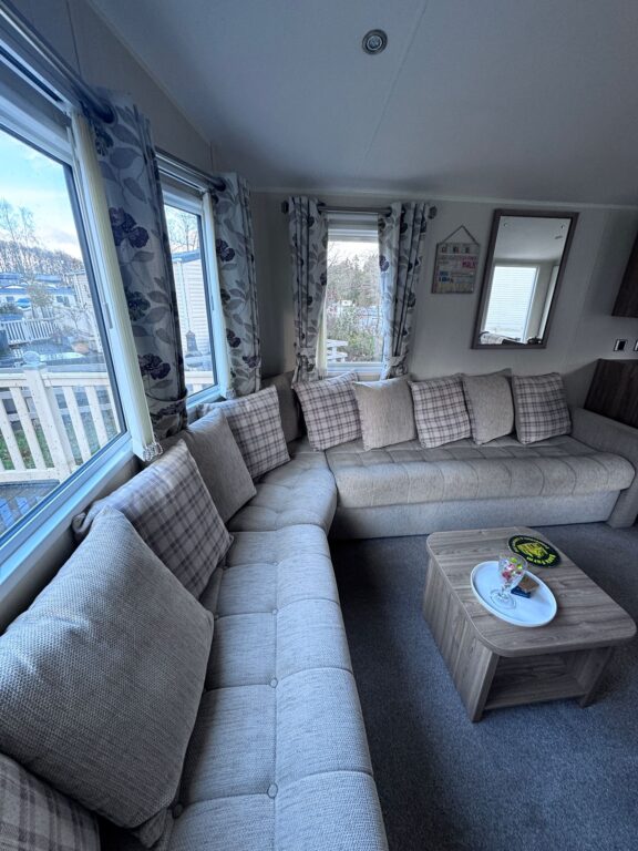 This lovely Rio Premier has been a “much-loved” gently used, holiday home and it shows. It sits on one of our elevated plots, with a great woodland view. Imagine enjoying your morning coffee on your private decking with glass balustrade, watching the birds in the trees above you.